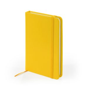 Bloc de notas A5 con tapa rígida de polipiel. Marcapáginas y banda elástica. 100 hojas.